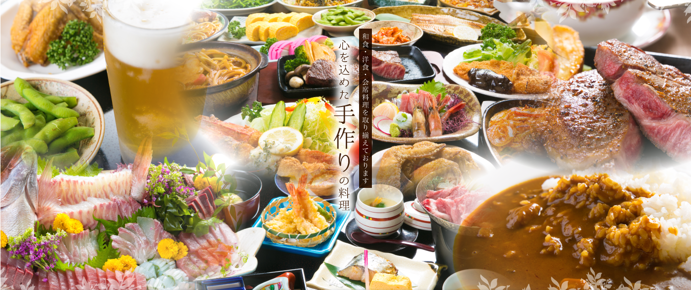 和食・洋食・会席料理を取り揃え、季節のお料理でおもてなしいたします。