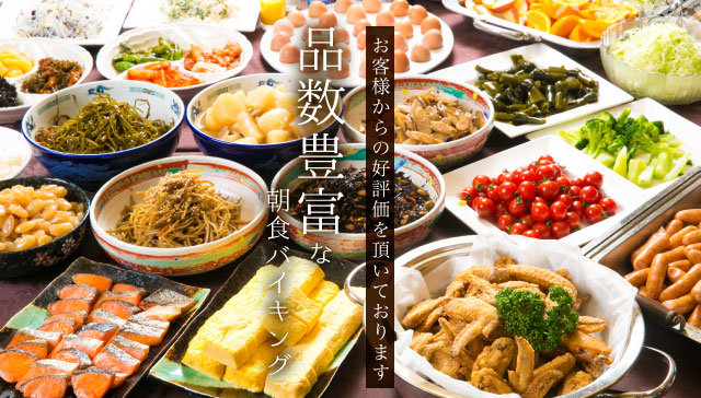 バラエティ豊か・ボリューム満点のバイキング朝食を。